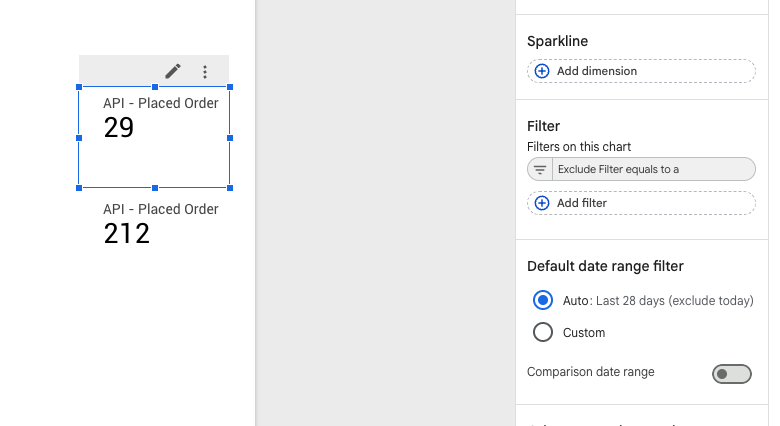 Create a scorecard with the Placed Order and add a filter by Flow, Exclude Flow Name equals “a”.
