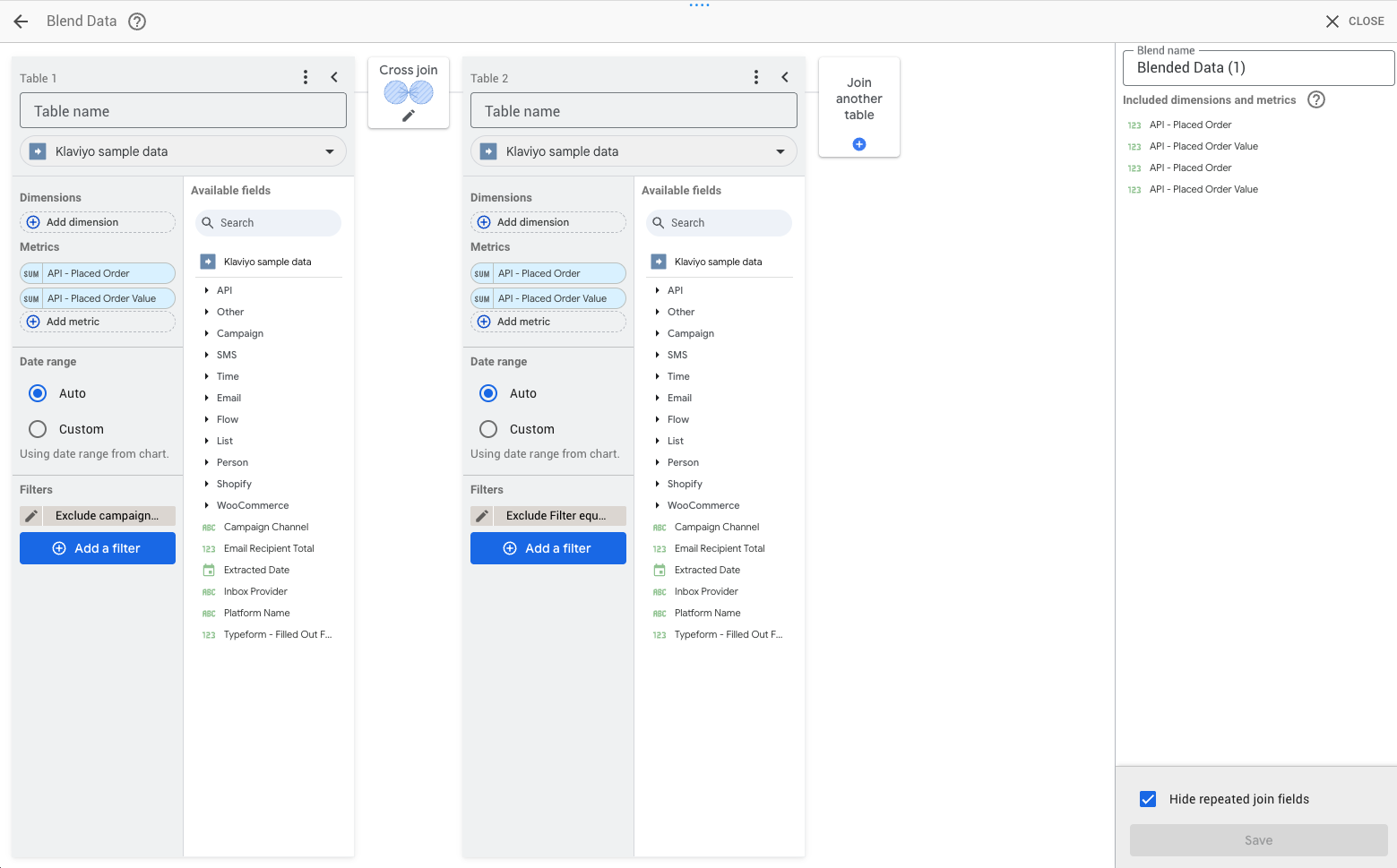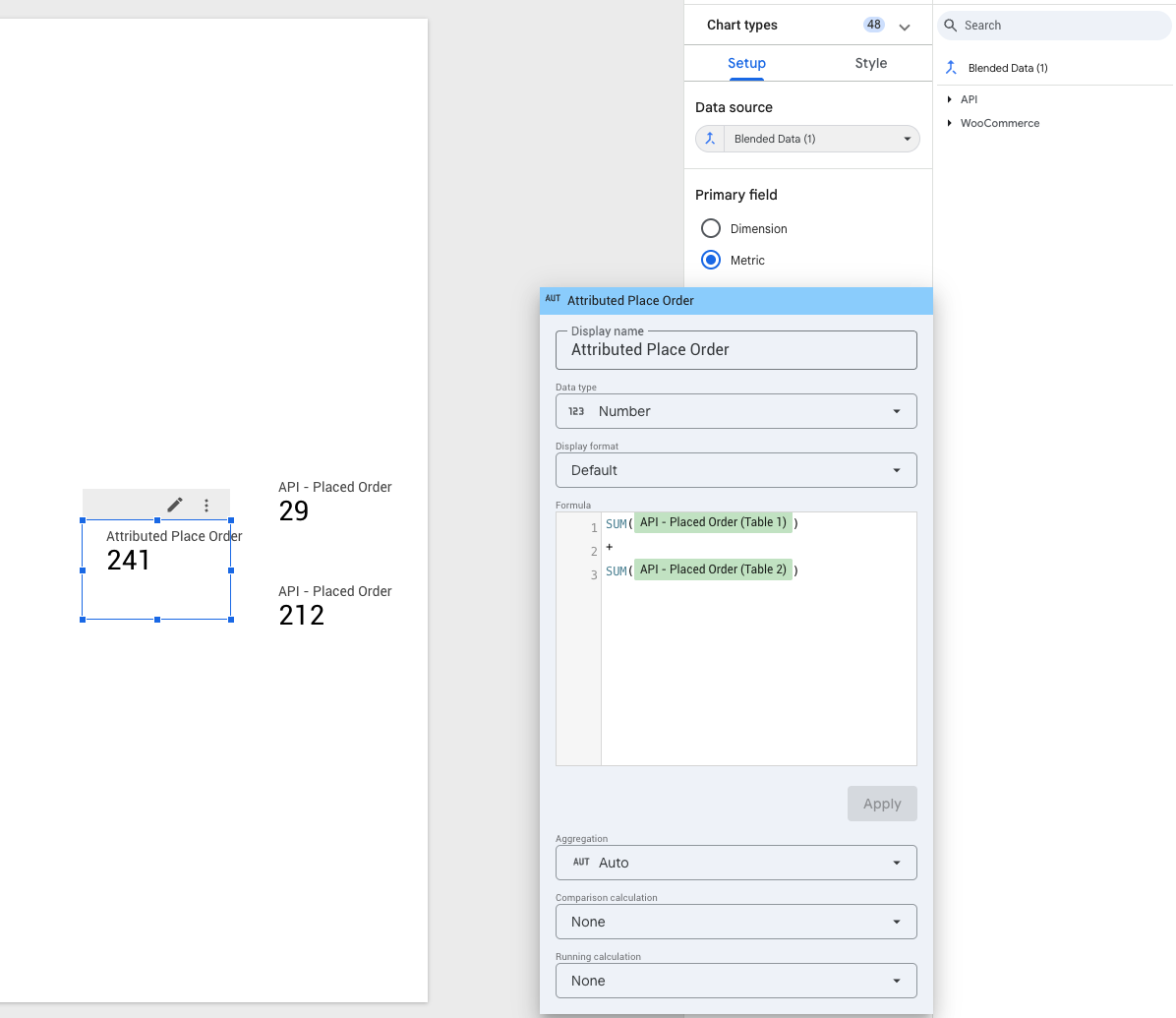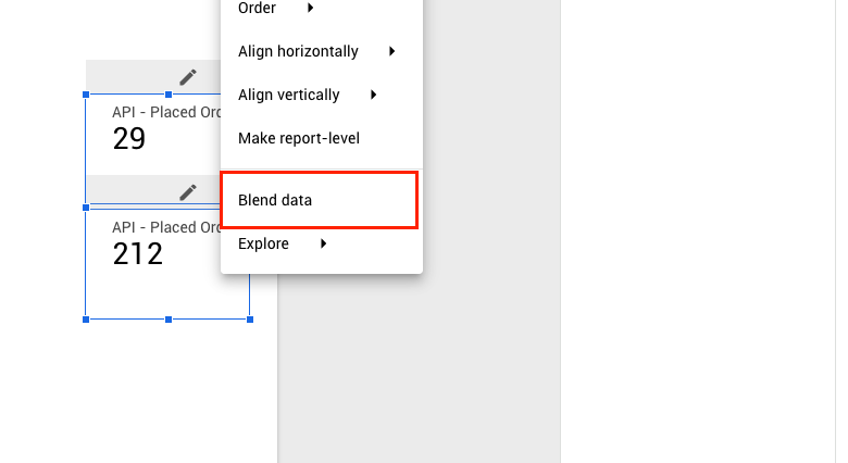 You can then edit your blend data source and add the Placed Order Value in the blend data source to use them as we previously did. The blend should look like this: