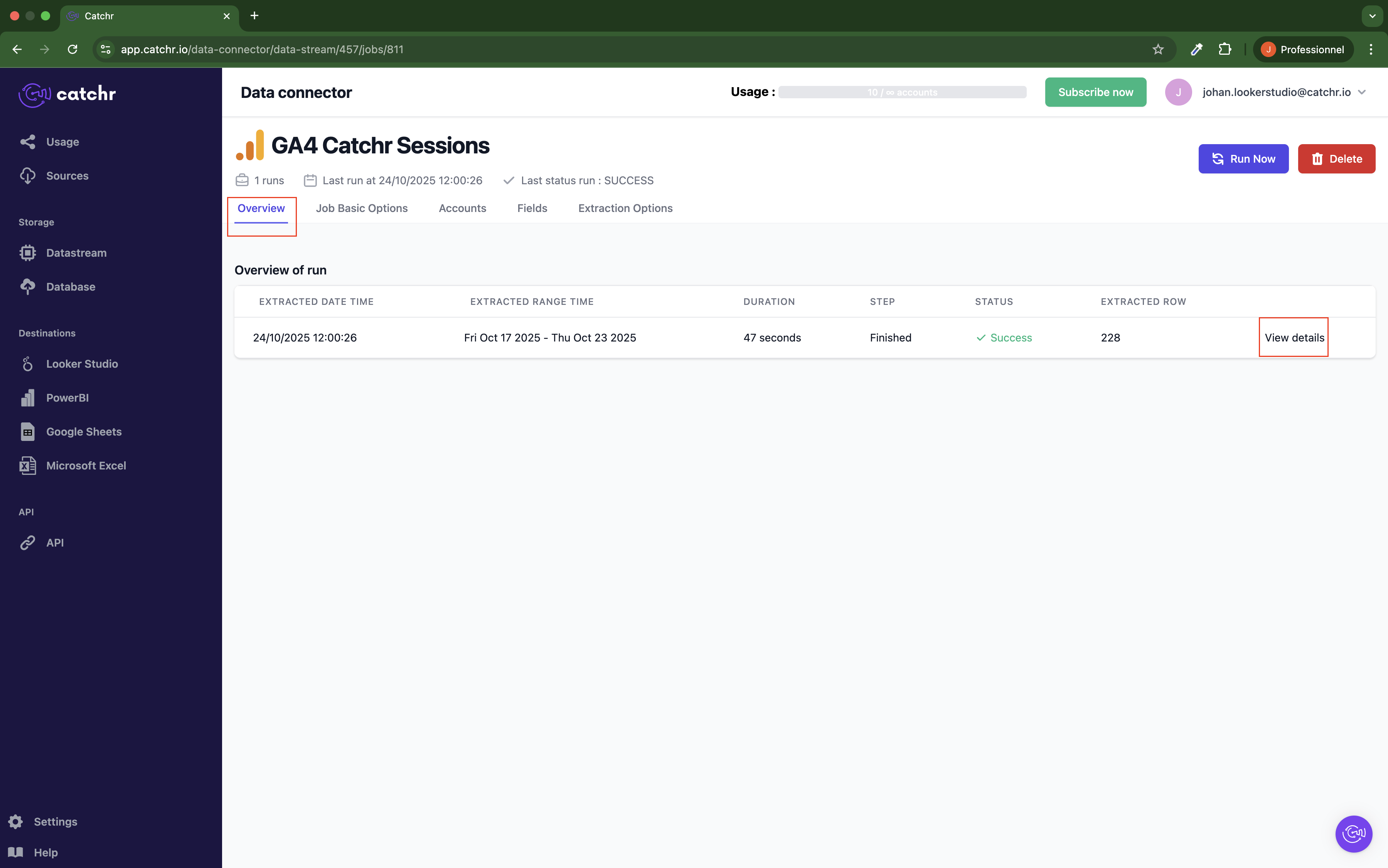 This view helps you verify the run’s performance and troubleshoot issues at the account level while keeping visibility on the overall job execution.
