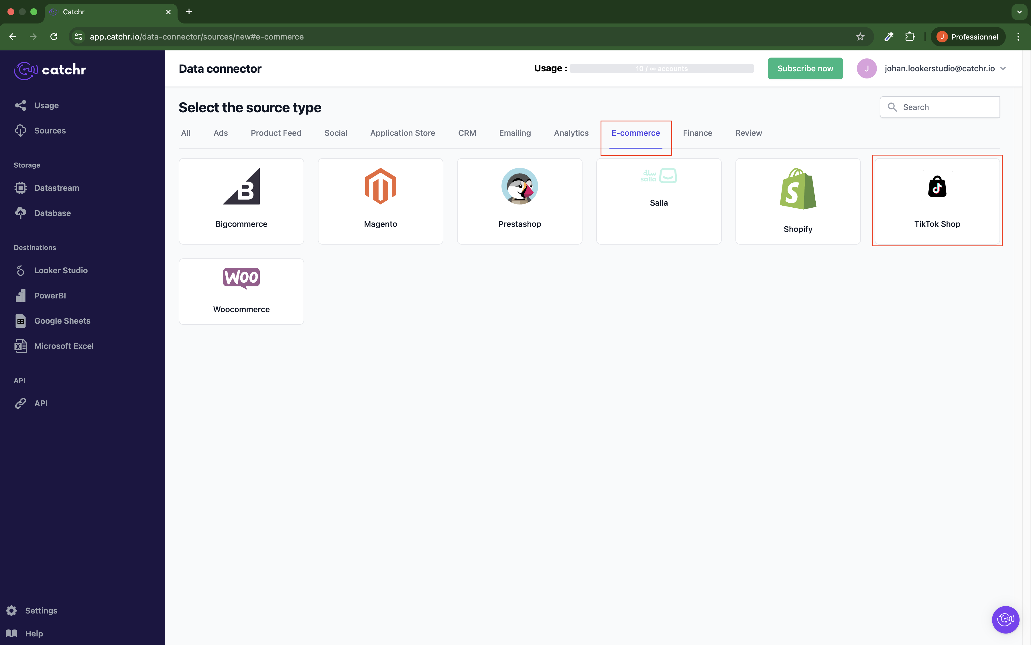 Connecting TikTok Shop to Catchr centralizes your E-commerce data and automates your reporting workflows.