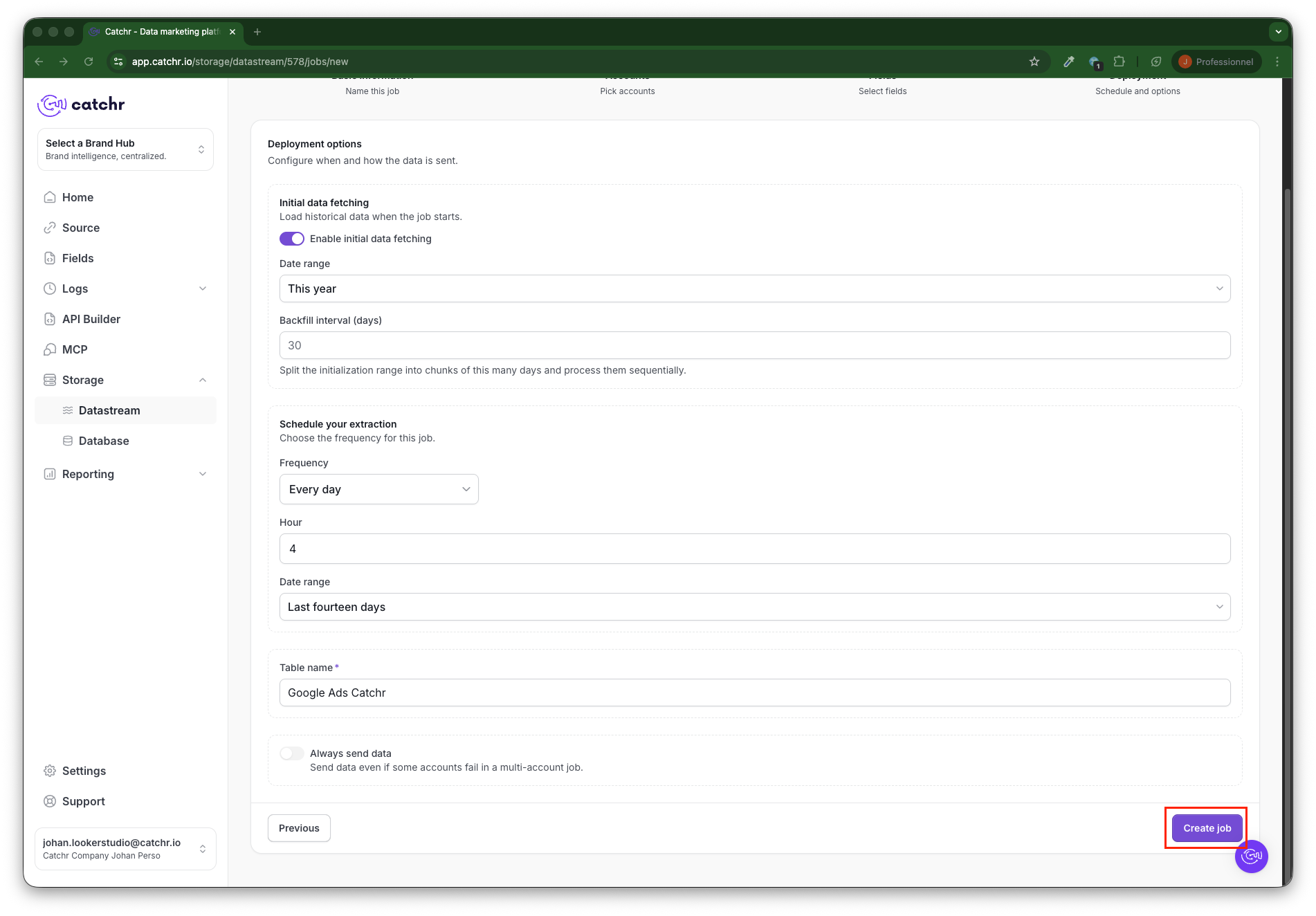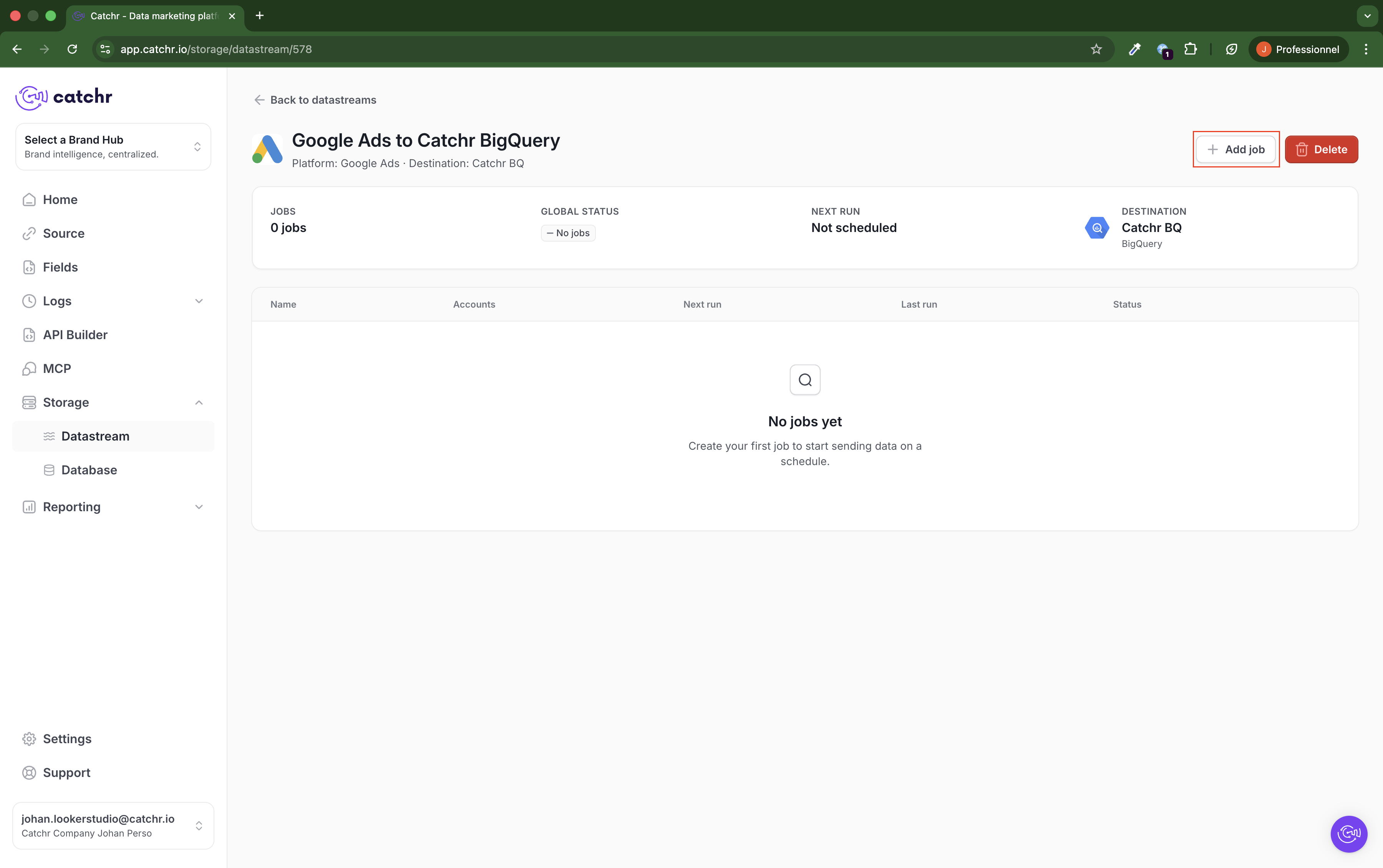 If you’ve just created your data stream, click on + Add job at the top right of the page.
