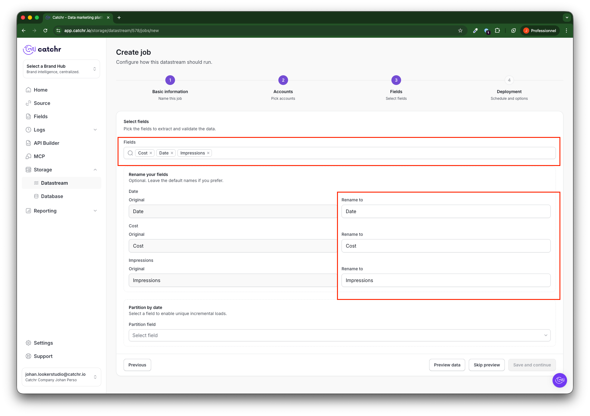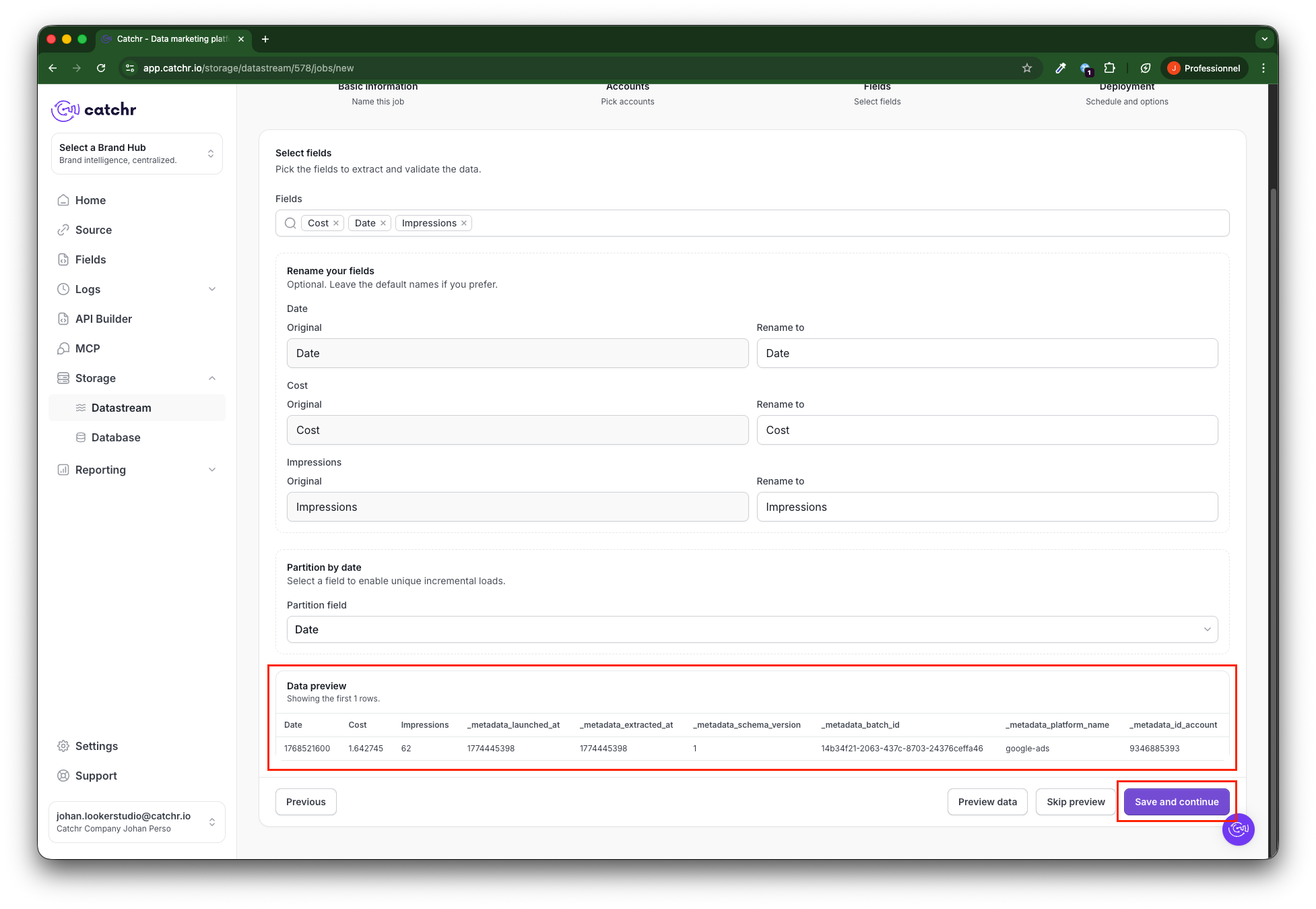 This step also helps you verify that the query runs correctly. We advise against skipping it, but some platforms can take a long time to return data, so you cannot preview it. In this case, you must skip the preview steps.