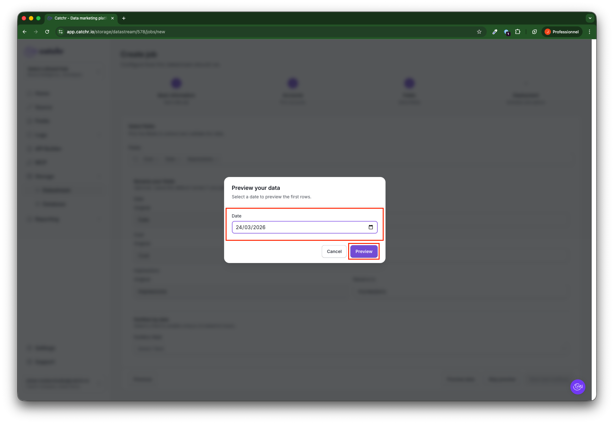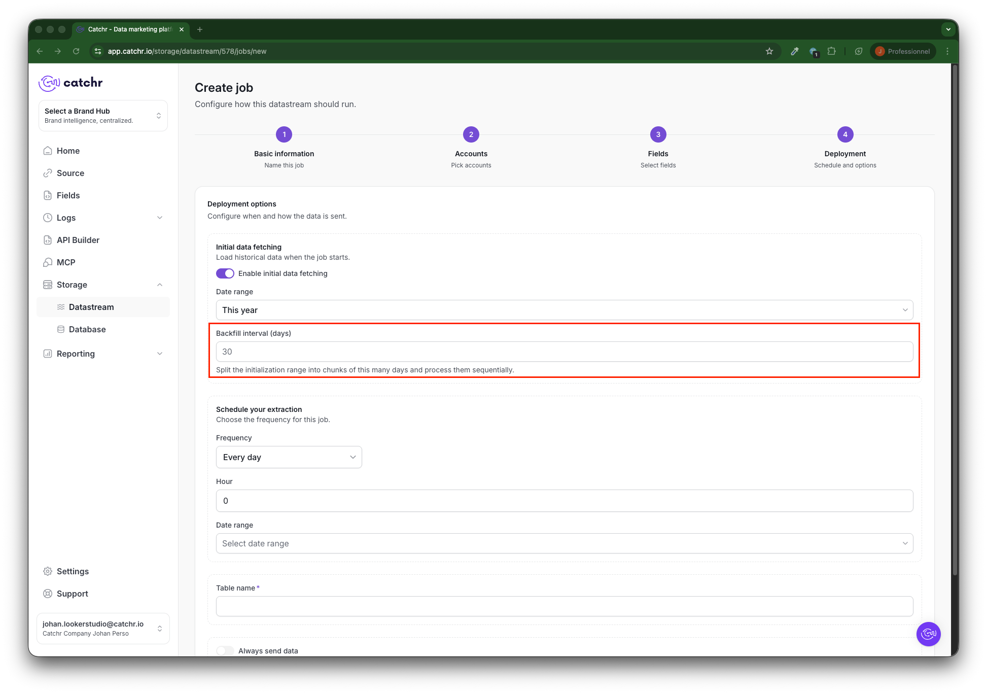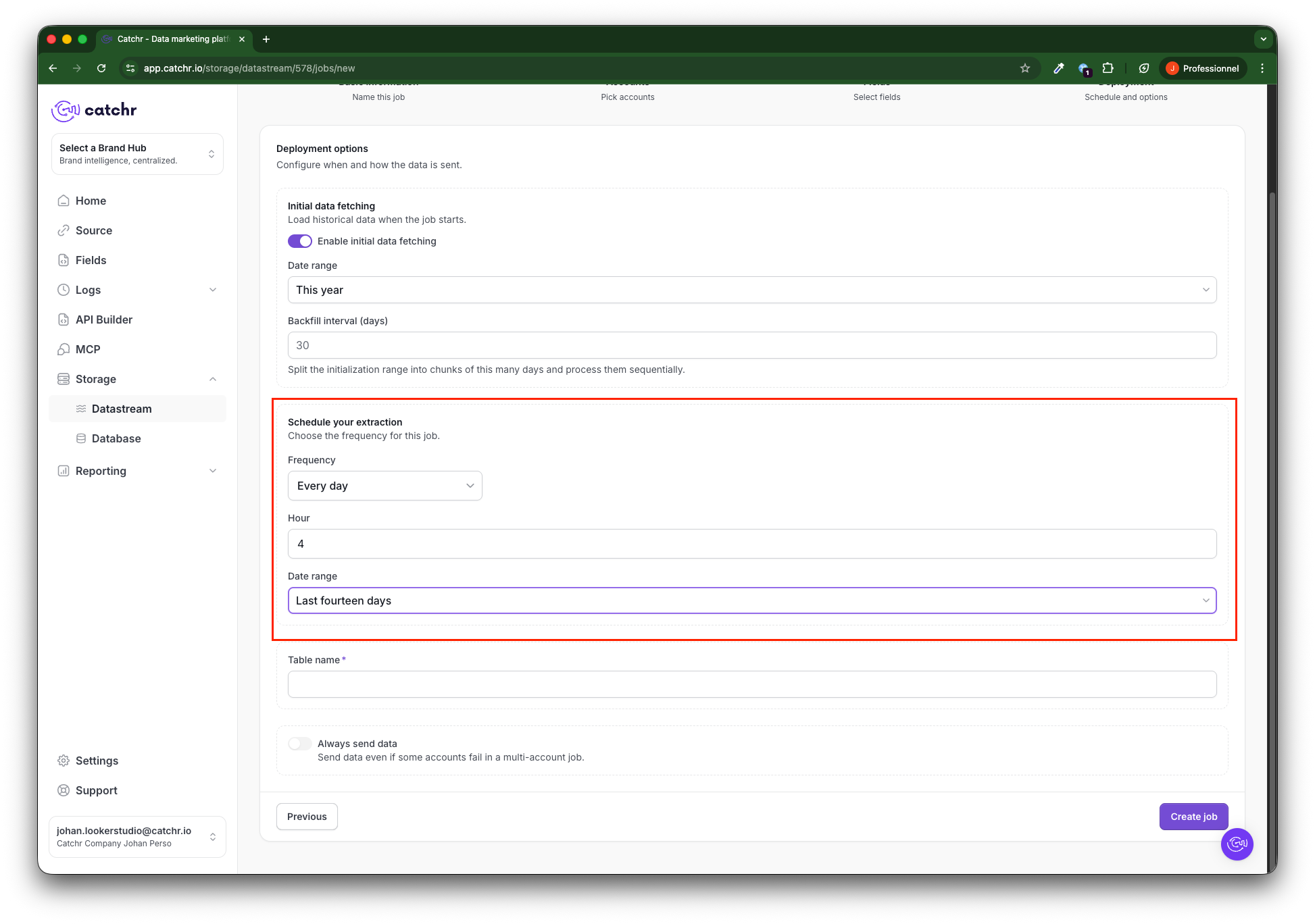 Go to app.catchr.io and open the Datastream menu in Storage.