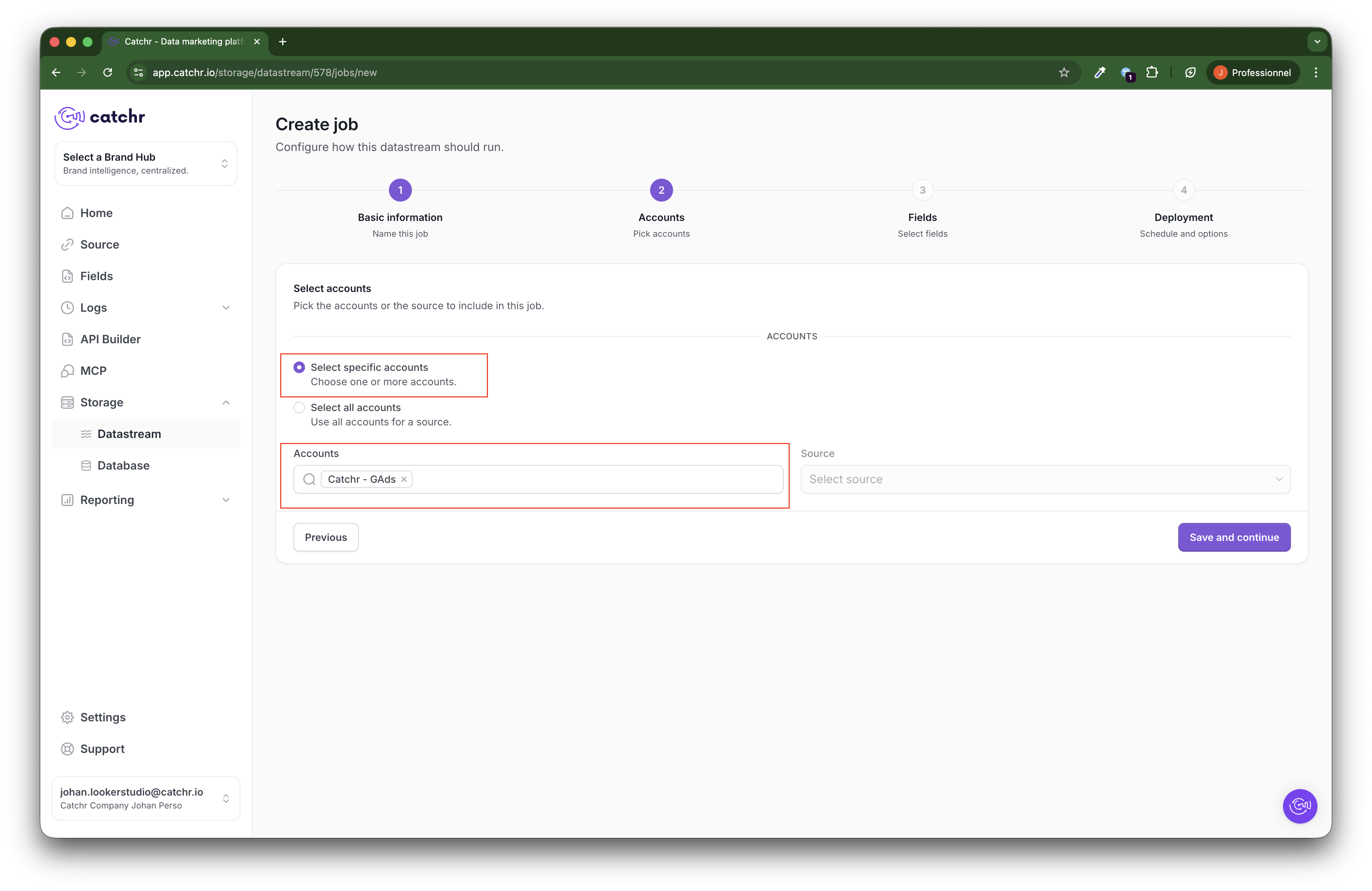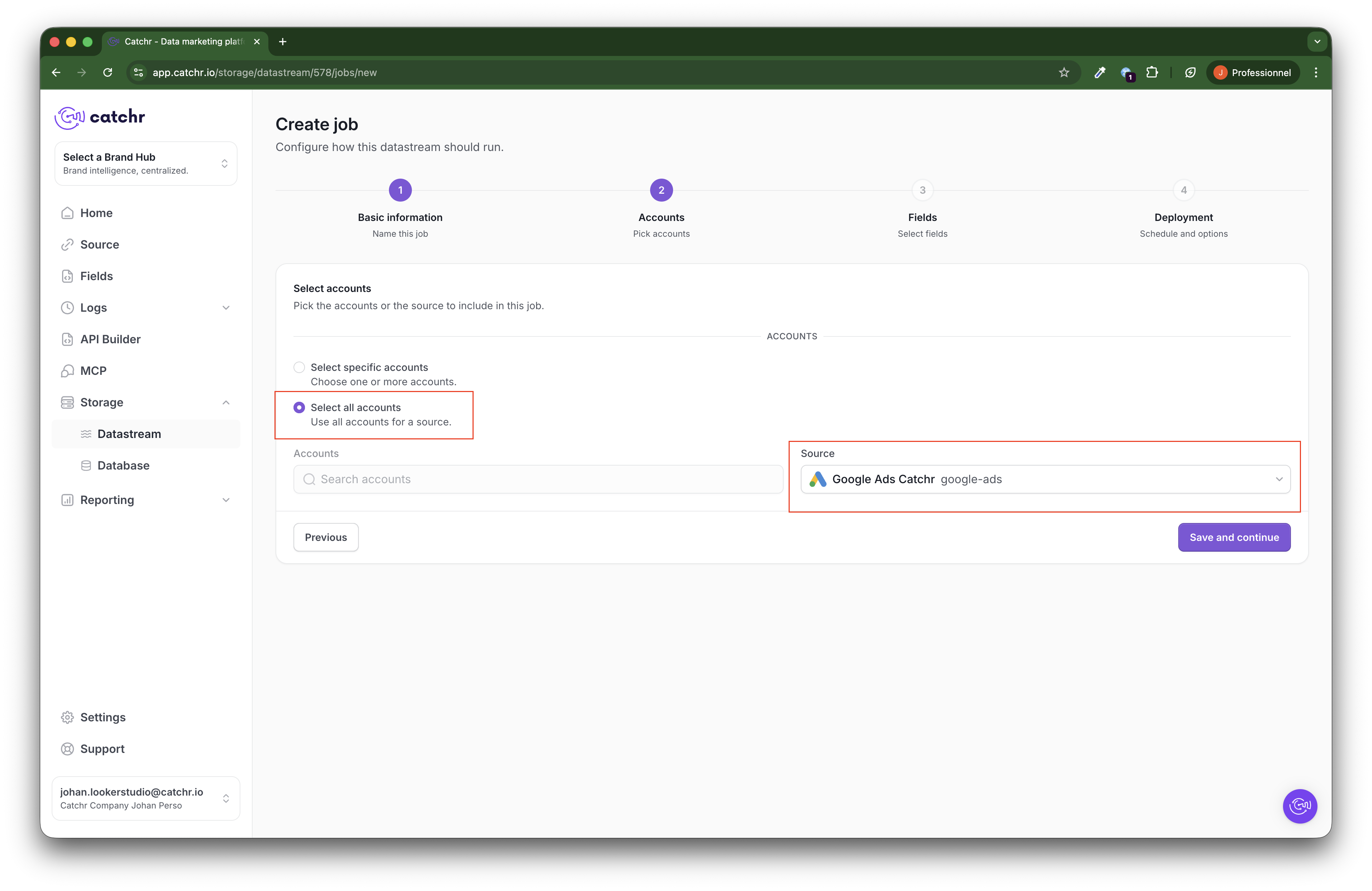 Choose the account(s) from which the data will be pulled. The accounts are available through the source you previously connected to Catchr.