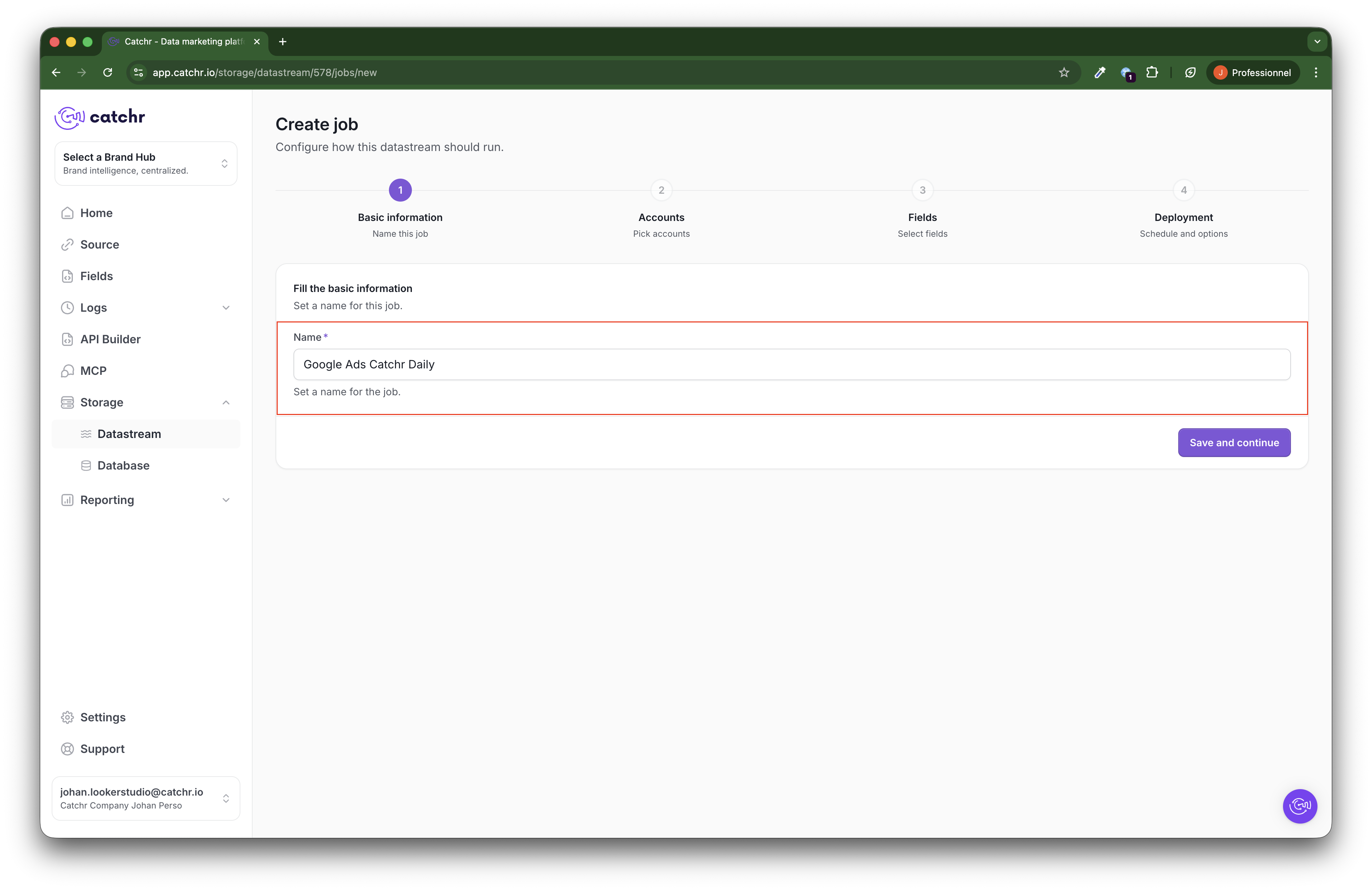 This name will be used to identify the job within Catchr.