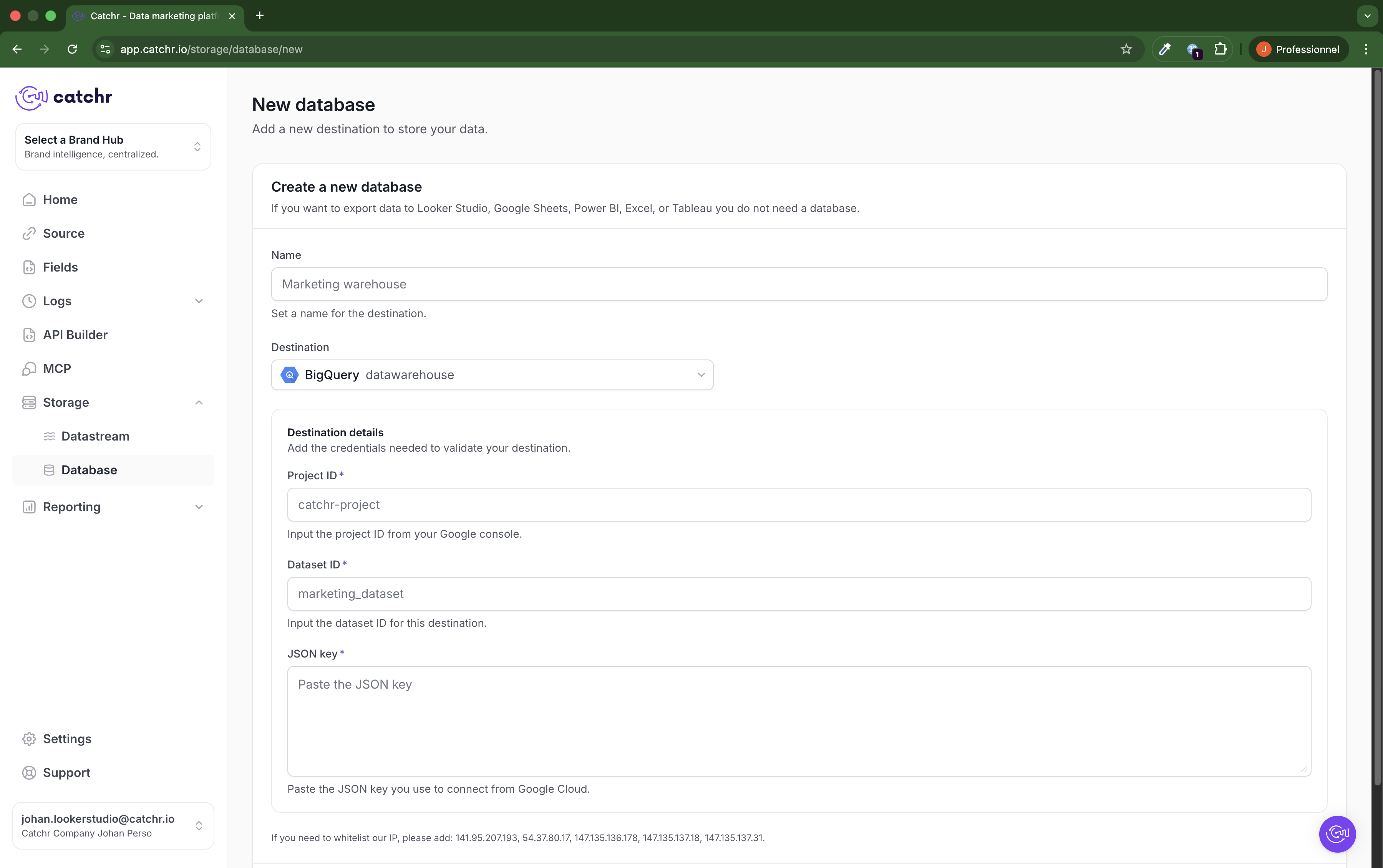 Set up the connection between your database and Catchr via the Databases section.