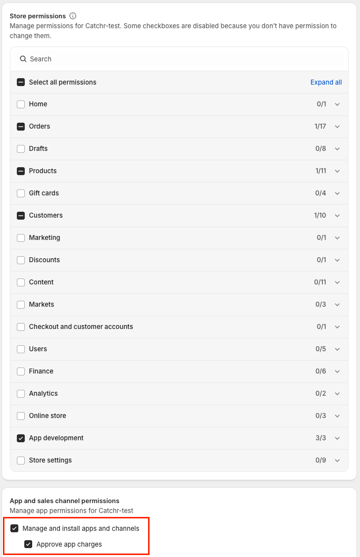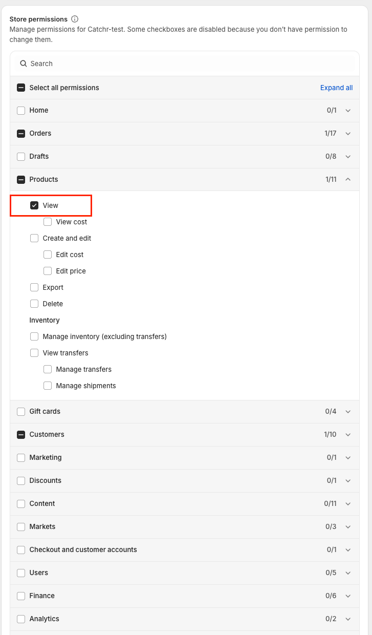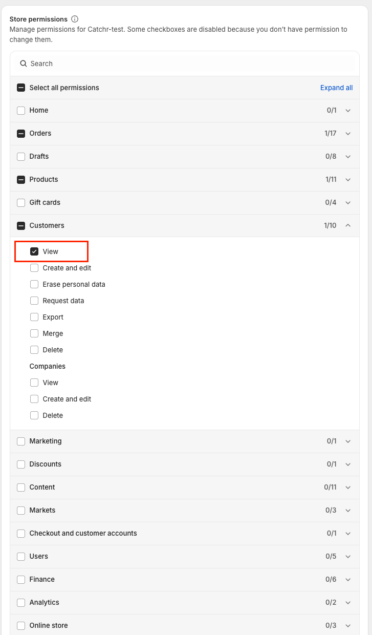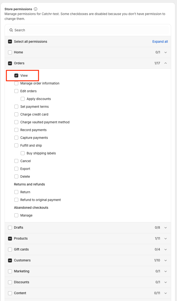 To connect Shopify to Catchr, your teammate (Staff user) must be able to: