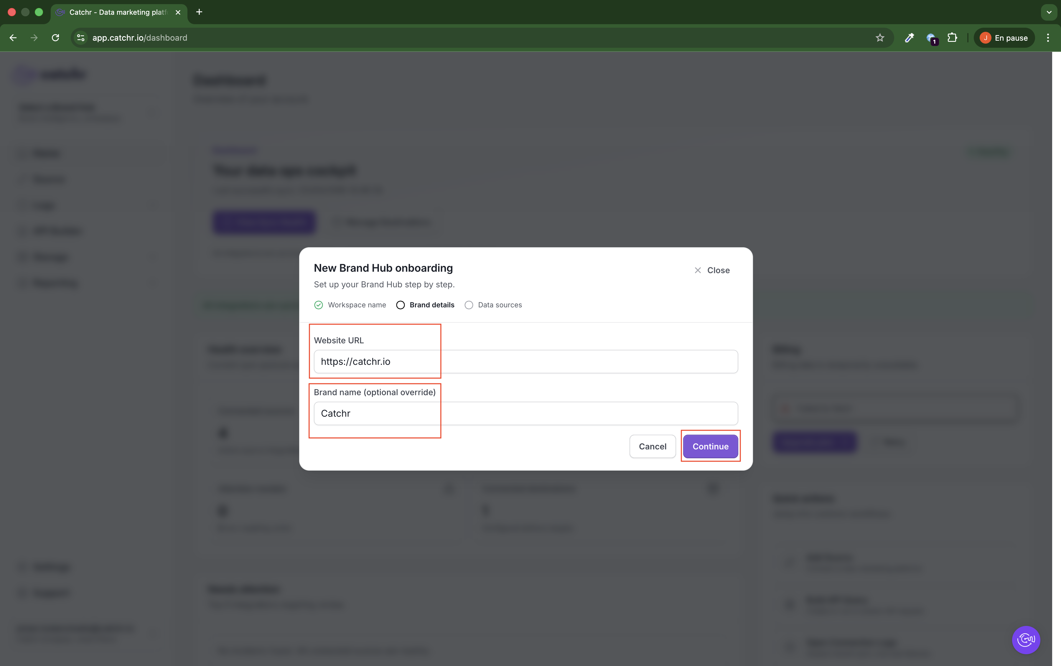 - Your brand workspace is active.