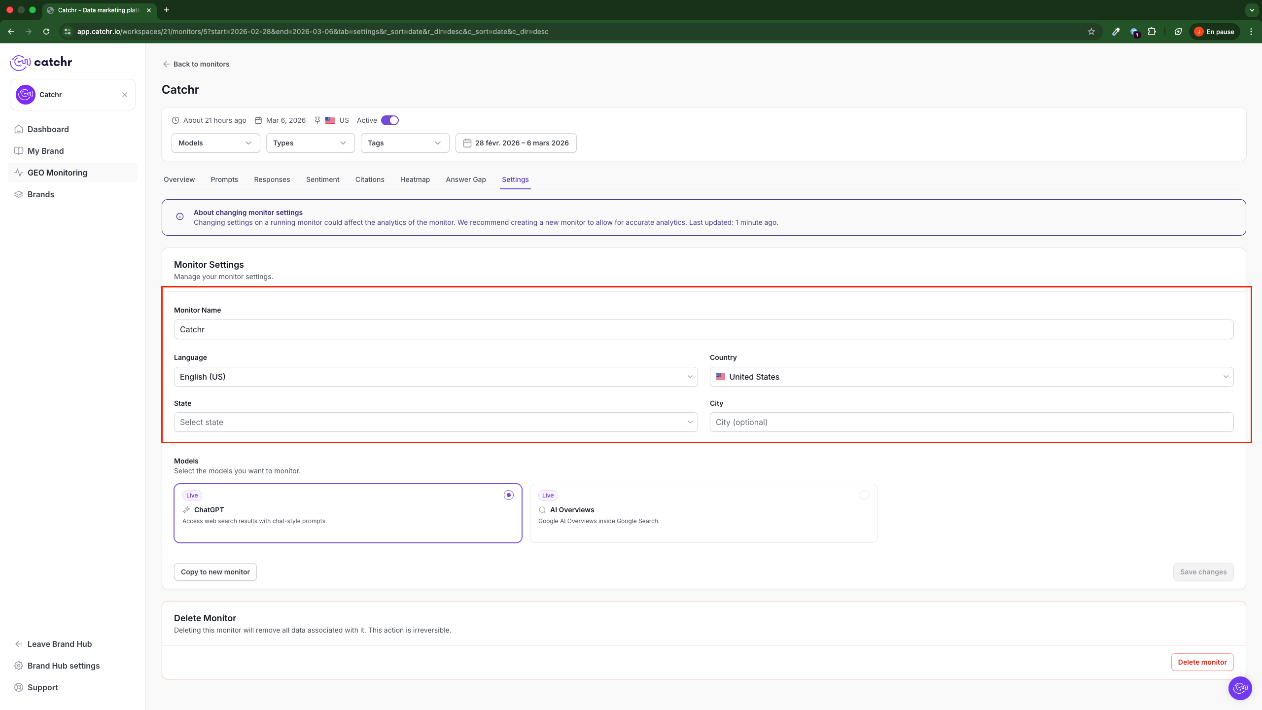 This tutorial explains how to use the Settings tab to review and update monitor configuration in GEO.