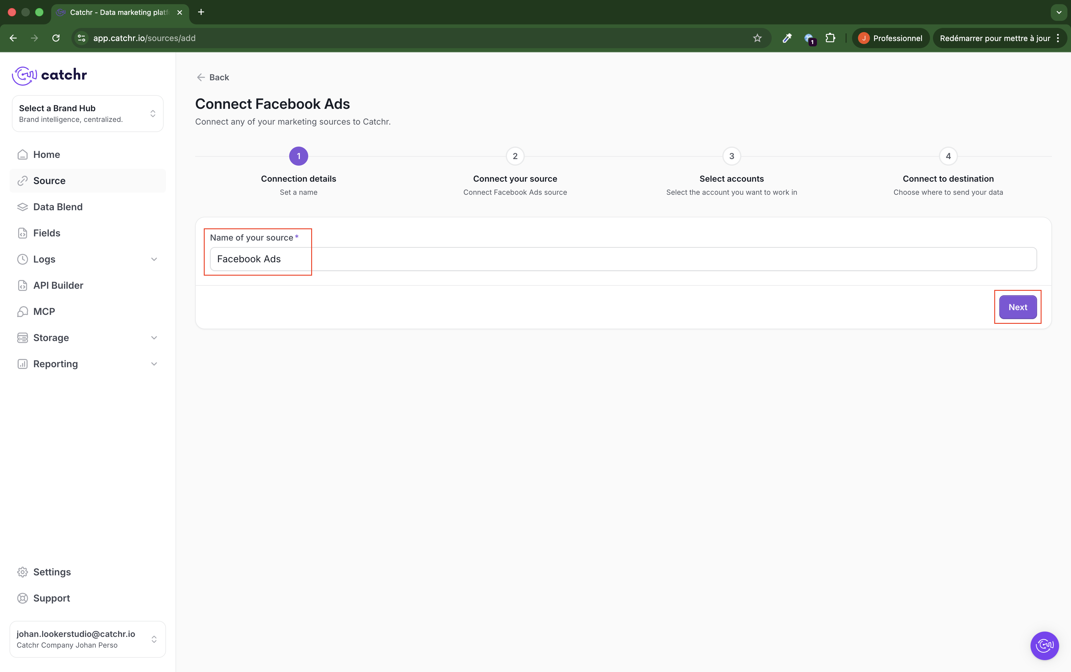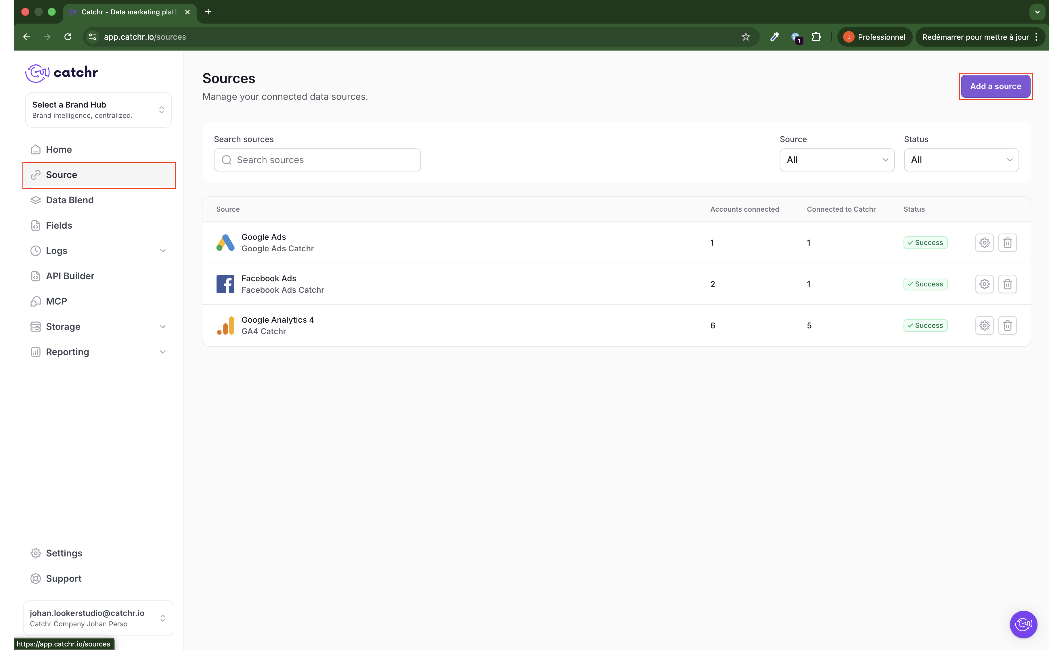 If the source still does not appear, contact Catchr support through chat.