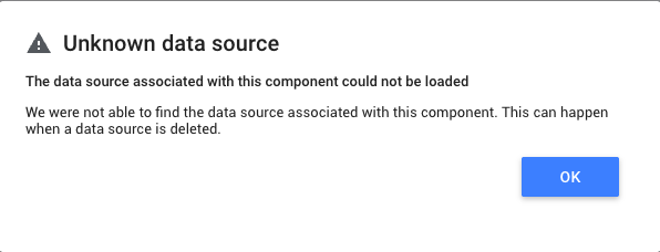 Verify that the account linked to the Looker Studio data source still exists in this source.